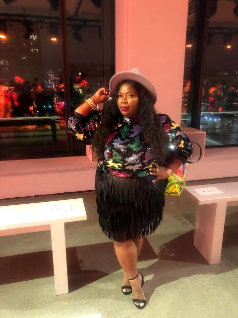 | My suit is from Ashley Stewart but you can find a similar one here and here. My bag is from a local store but I found a similar one here, My bodysuit is from Citi Trends but Ashley Stewart has one here. |